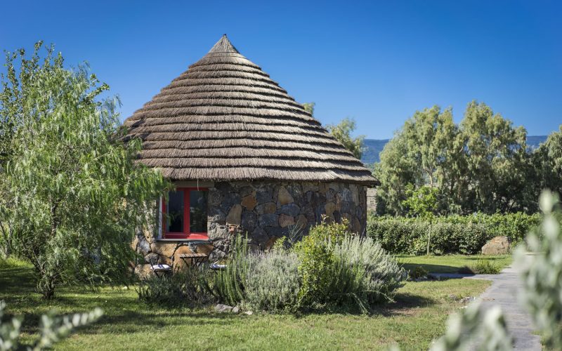 Oggi l’azienda lavora quasi del tutto attraverso i sistemi di energia sostenibile e biomassa, hanno un sistema di depurazione delle acque. Le strutture costruite, sono compatibili, e riprendono la forma tradizionale delle casette di campagna sarde costruite con materiali locali e di recupero trovati anche nell’area cui hanno edificato l’agriturismo, come le pietre in basalto. Inoltre sono stati utilizzati diversi materiali eco sostenibili quali la lana di pecora sarda come isolante acustico creato in Sardegna e utilizzato anche all’estero. La cosa interessante è che nella costruzione dell’agriturismo c’è stata una contaminazione in parte della loro cultura e in parte della cultura dei professionisti che li hanno aiutati a realizzare questo progetto.